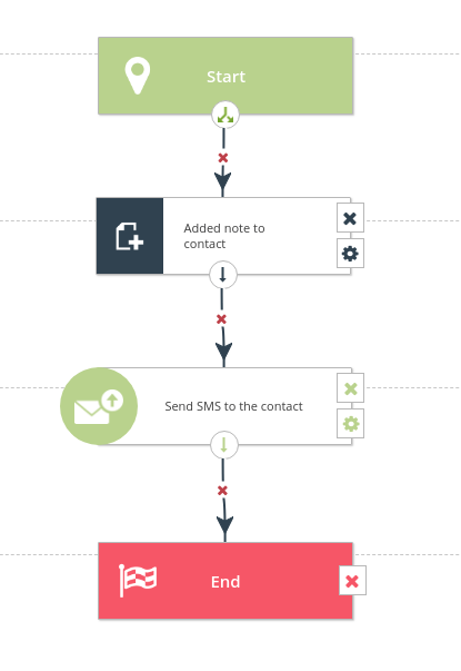 Exemplo de fluxo de trabalho que envia um SMS quando uma nota é adicionada a um contato: