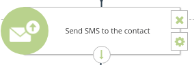 Para usar a ação de enviar SMS para um contato, você deve arrastar a ação Enviar SMS para contato do menu de elementos do lado direito.